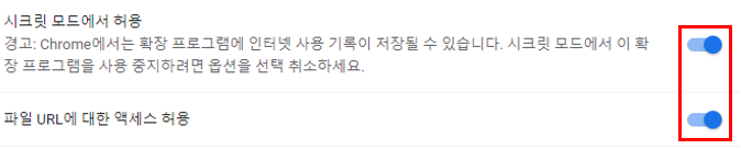 1. 시크릿 모드에서 허용 : On