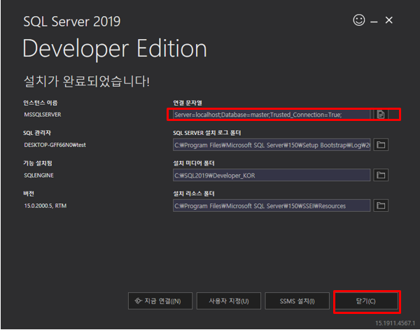 - 인스턴스 이름 : Server=localhost; Database=master; Trusted_Connection=True;