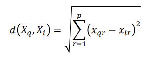 2) 학습 집합 중 K개의 데이터를 거리지표를 사용하여 선택