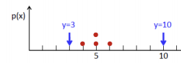 예로, data set X = {4, 5, 5, 6, 12}가 존재, h=4, y=3,10일때