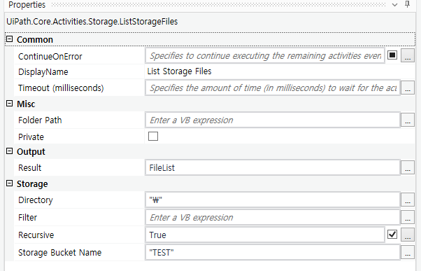UiPath.Core.Activities.Storage.ListStorageFile Description Lists files matching a given pattern from a specified Storage Bucket in Orchestrator. Project compatibility Windows - Legacy | Windows | Cross-platform Cross-platform configuration Orchestrator Fol