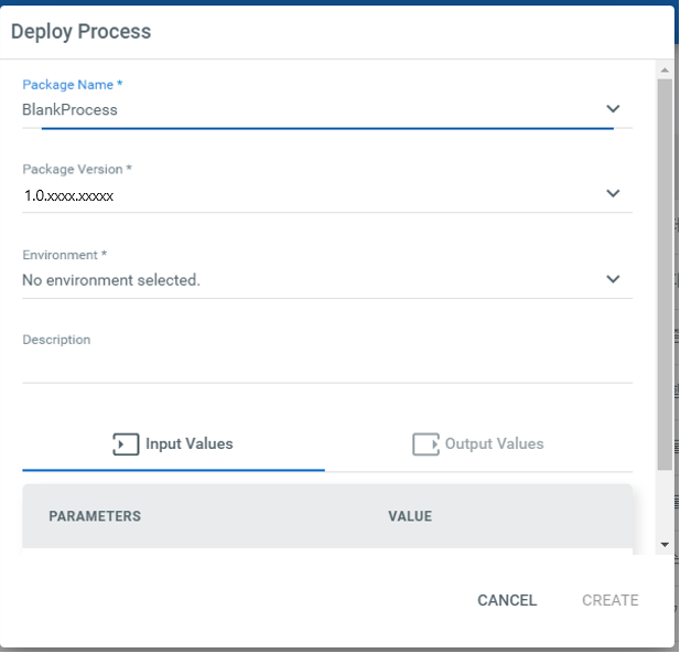 ROBOTS > Environments > Porcess 생성한 Environment의 Manage 클릭